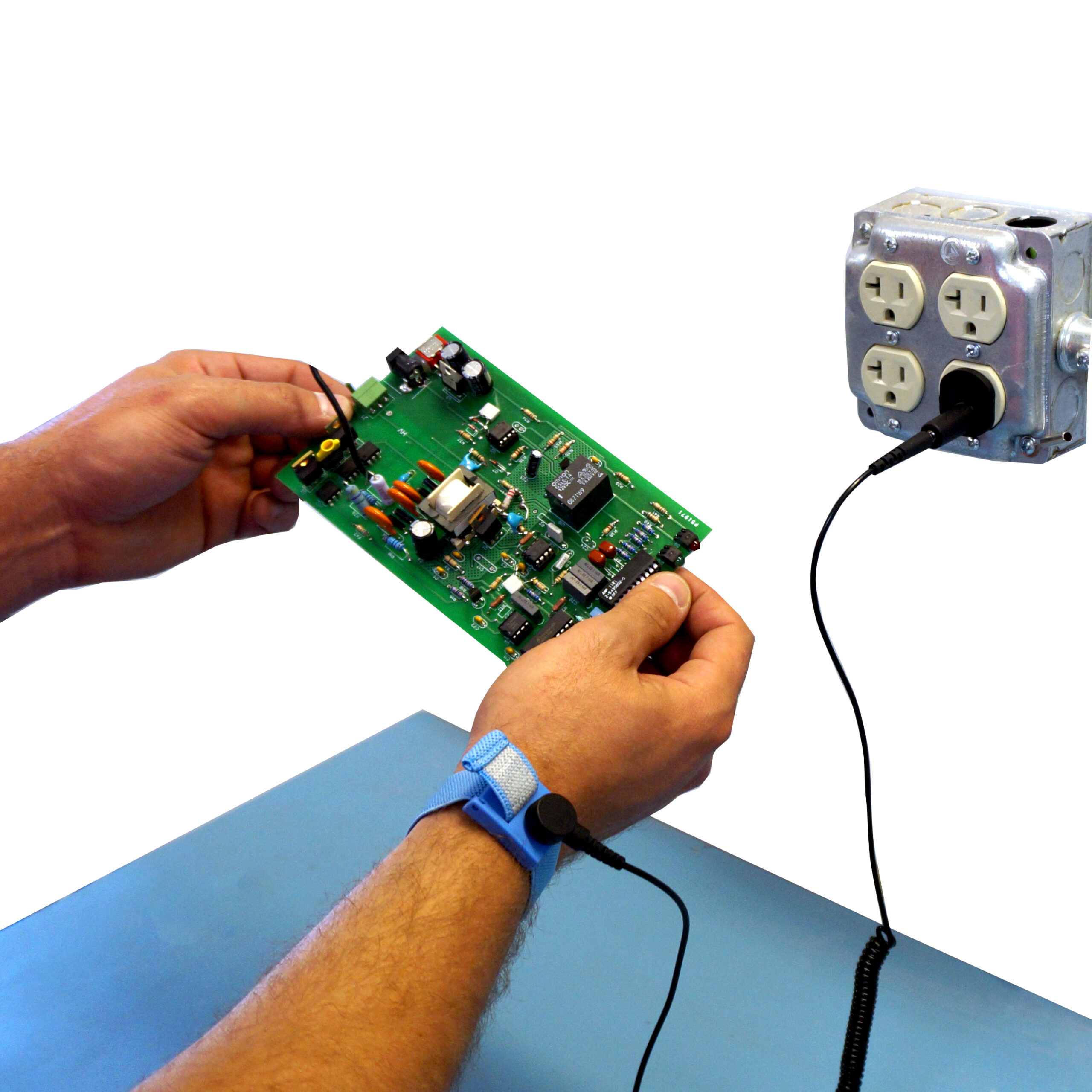 - Converts a standard three-prong electrical outlet into a universtal groundable point for wrist straps and other grounding hardware with banana plugs.