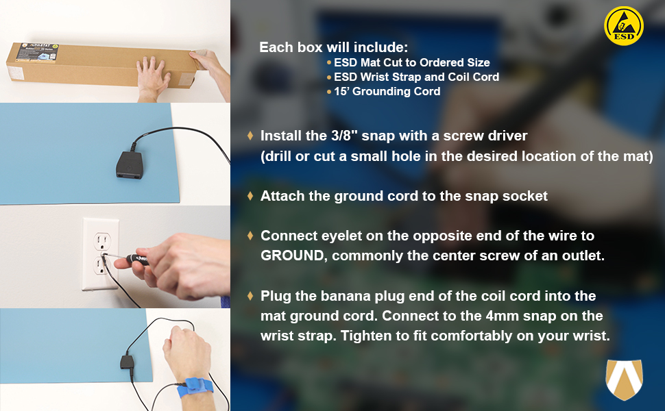 • TOTAL ESD PROTECTION: All of the kits (excluding 50' rolls) include an ESD mat, an adjustable wrist strap, and a 15 foot ground cord